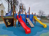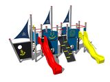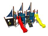 5 turnuri, 2 tobogane, seturi de bare metalice într-un cadru metalic, 3 stâlpi cu steag, tablă de desenat, acces la plasa înclinată, perete de cățărare înclinat cu suporturi de cățărare, rampă înclinată cu frânghie și trepte HDPE, scară înclinată cu trepte metalice, 4 deschideri, scară, ancoră, timonă din HDPE, 4 bariere din HDPE. Mai multe informaţii
