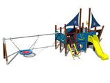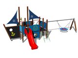 6 turnuri, 2 tobogane, 2 seturi de bare metalice într-un cadru metalic, 2 stâlpi cu steag, acces la plasa înclinată, timonă din HDPE, 4 bariere din HDPE, 2 bariere cu o deschidere, rampă înclinată cu trepte și mânere metalice, tablă de desenat cu o ancoră, leagăn cu lanț. Mai multe informaţii