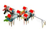 Scaunele și balamalele nu fac parte din leagăn. Este necesar să cumpărați un scaun (2 bucăți) la alegere și draperii (4 bucăți). 7 turnuri, 2 tobogane, tobogan cu tub, 7 acoperișuri în formă de A, 9 bariere, perete de cățărare înclinat cu suporturi de cățărare, rampă înclinată cu frânghie și trepte HDPE, 2 rampe înclinate cu trepte și mânere metalice, tunel pentru mers de-a bușilea, stâlp de pompieri, pânză de păianjen, 3 punți cu corzi, grinda metalica, 2 pod cu balustradă de frânghie, scară. Mai multe informaţii