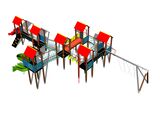 Scaunele și balamalele nu fac parte din leagăn. Este necesar să cumpărați un scaun (2 bucăți) la alegere și draperii (4 bucăți). 7 turnuri, 2 tobogane, tobogan cu tub, 7 acoperișuri în formă de A, 9 bariere, perete de cățărare înclinat cu suporturi de cățărare, rampă înclinată cu frânghie și trepte HDPE, 2 rampe înclinate cu trepte și mânere metalice, tunel pentru mers de-a bușilea, stâlp de pompieri, pânză de păianjen, 3 punți cu corzi, grinda metalica, 2 pod cu balustradă de frânghie, scară. Mai multe informaţii