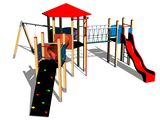Scaunele și balamalele nu fac parte din leagăn. Este necesar să cumpărați un scaun (1 bucăți) la alegere și draperii (2 bucăți). 3 turnuri, tobogan, acoperiș, perete de cățărare înclinat, punte cu corzi, scară, tunel pentru mers de-a bușilea între turnuri, stâlp de pompieri, grinda metalica, 6 bariere din HDPE. Mai multe informaţii