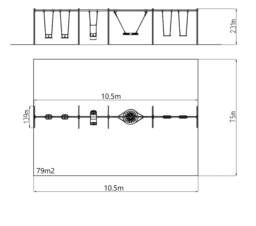 Structura de susținere a leagănului este realizată din oțel structural, este zincată sau acoperite cu duplex strat de vopsea pe bază de pulberi întărite în conformitate cu RAL, pentru a preveni coroziunea și este fixată într-o fundație de beton.