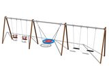 Leagănul este atârnat de o grindă metalică cu lanțuri galvanizate. Scaunul tip „Scoică” este realizat din frânghie de polipropilenă cu fibre pentru uz intensiv. Frânghiile sunt realizate din material HERKULES (frânghii cu grosimea de 16 mm din polipropilenă cu miez interior din oțel). Scaunul normal este confecționat din aluminiu, acoperit cu cauciuc moale și confortabil. Baby Scaunul este realizat din cauciuc și este ranforsat cu inserţie din aluminiu. Toate materialele de fixare sunt galvanizate sau sunt realizate din oțel inoxidabil.