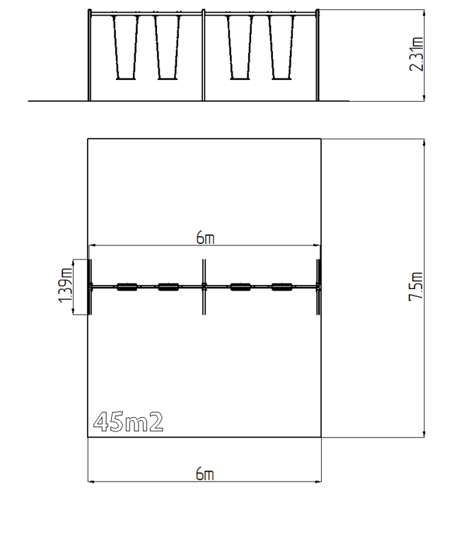 | Suprafață de amortizare la cădere: | Cauciuc sau pietriș 45 m2 |