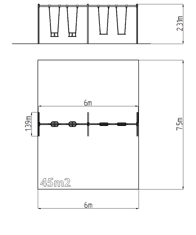 | Suprafață de amortizare la cădere: | Cauciuc sau pietriș 45 m2 |