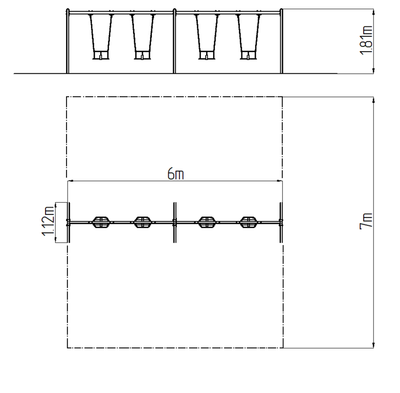 Structura de susținere a leagănului este realizată din oțel structural, este zincată sau acoperite cu duplex strat de vopsea pe bază de pulberi întărite în conformitate cu RAL, pentru a preveni coroziunea și este fixată într-o fundație de beton.