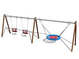 Leagănul este atârnat de o grindă metalică cu lanțuri galvanizate. Scaunul tip „Scoică” este realizat din frânghie de polipropilenă cu fibre pentru uz intensiv. Frânghiile sunt realizate din material HERKULES (frânghii cu grosimea de 16 mm din polipropilenă cu miez interior din oțel). Baby Scaunul este realizat din cauciuc și este ranforsat cu inserţie din aluminiu. Toate materialele de fixare sunt galvanizate sau sunt realizate din oțel inoxidabil.