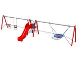 Leagăn cu lanț cu trei locuri RH6383 - cu o platformă de aterizare și un braț metalic, galvanizat, înălțime de cădere 1 m, gazonul este suficient pentru suprafața de impact. 2 Scaun Baby, 1 scaun „scoică” (diametru 1 m). Sunt disponibile patru variante de culori - roșu, verde, albastru și galben. Mai multe informaţii