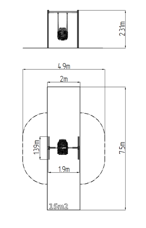 | Suprafață de amortizare la cădere: | Cauciuc sau pietriș 15 m2 |