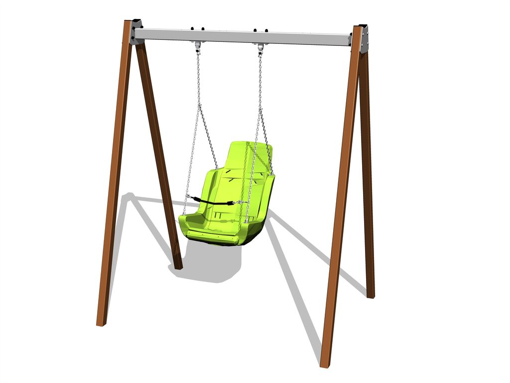 Scaunul incluzive este confecționat din aluminiu, acoperit cu cauciuc moale și confortabil. Lanțurile sunt din oțel inoxidabil, ceea ce atinge o prelungire foarte importantă a vieții lor. Toate materialele de fixare sunt galvanizate sau sunt realizate din oțel inoxidabil.
