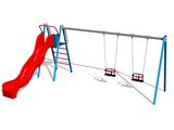 Leagăn cu lanț cu două locuri cu un tobogan RH6253K - metal (înălțime liberă 1 m) - oferim trei variante de culori pentru structura de susținere - roșu, albastru și maro. Mai multe informaţii