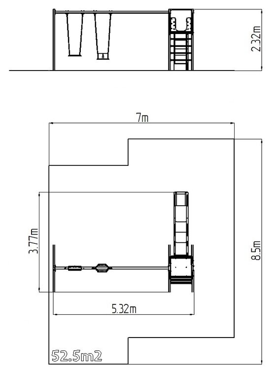 | Suprafață de amortizare la cădere: | Cauciuc sau pietriș 52,5 m2 |