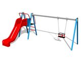 Leagăn cu lanț cu un tobogan RH6152K - metal (înălțime liberă 1 m) - nu este necesară o zonă de cădere până la înălțimea de 1 m, o suprafață cu iarbă este suficientă. Oferim trei variante de culori pentru structura de susținere - roșu, albastru și maro. Mai multe informaţii