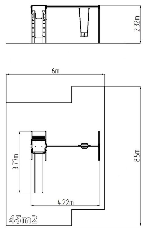 | Suprafață de amortizare la cădere: | Cauciuc sau pietriș 45 m2 |