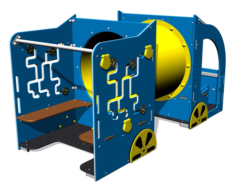 Toate celelalte piese sunt fabricate din HDPE din plastic de înaltă calitate (polietilenă de înaltă presiune, de culoare completă, care se caracterizează prin rezistență la culoare ridicată, rezistență la UV și în principal siguranță, deoarece nu se poate rupe și nu există riscul de rănire a copiilor ascuțiți fragmente). Tunelul pentru mers de-a bușilea este realizat din polietilenă, care este stabilă la UV și se caracterizează printr-o stabilitate ridicată a culorii. Toate materialele de fixare sunt galvanizate sau sunt realizate din oțel inoxidabil.