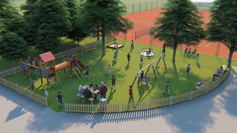 - Proiect personalizat de loc de joacă - procesarea gratuită a imaginii spațiului pentru viitorul dvs. loc de joacă pentru copii, inclusiv zone de protecție și de cădere.
