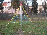 Piramidă de cățărare PY621K (înălțime de cădere 1 m, cu 6 dispozitive de pretensionare, fără pânză de păianjen) - nu este necesară o zonă de cădere până la înălțimea de 1 m, o suprafață cu iarbă este suficientă. Mai multe informaţii