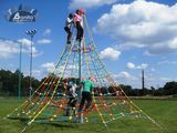 Stâlpul de susținere al piramidei din frânghii este realizat din oțel structural. Stâlpul este protejat împotriva coroziunii prin galvanizare la cald și este fixat într-o fundație de beton. Frânghiile sunt realizate din material HERKULES (frânghii cu grosimea de 16 mm din polipropilenă cu miez interior din oțel) și sunt conectate cu îmbinări din plastic sau aluminiu. Piulițele de strângere sunt din oțel inoxidabil. Toate materialele de fixare sunt galvanizate sau sunt realizate din oțel inoxidabil.