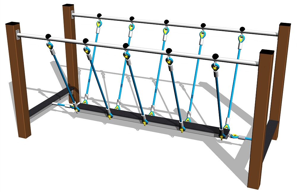 Pod de frânghie - metalic (înălțime liberă 1 m) - până la o înălțime de 1 m, nu este necesară o zonă de impact, este suficientă o zonă cu iarbă. Oferim două variante de culoare ale structurii de susținere - maro și argintiu. Mai multe informaţii