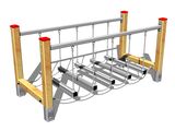 Structura de susținere a punții cu lanțuri este realizată cu suporturi din lemn groase, lipite. Această soluție asigură o protecție maximă împotriva fisurării, problemă comună la produsele realizate din lemn masiv. Suporturile din lemn sunt impregnate și acoperite cu un strat triplu de lac, care respectă termenii și condițiile standardului EN71/3 (sigur pentru jucăriile copiilor). Structurile sunt ancorate în sol cu plăci din oțel care sunt protejate împotriva coroziunii prin galvanizare la cald și sunt fixate într-o fundație de beton. Ancorele sunt fixate pe unitatea de joacă cu şuruburi, iar structura lor garantează că nu intră în contact direct cu solul. Toate celelalte elemente metalice sunt, de asemenea, )zincate sau acoperite cu duplex strat de vopsea pe bază de pulberi întărite în conformitate cu RAL, pentru a preveni coroziunea. Barele instabile sunt atârnate de un suport metalic cu lanțuri galvanizate. Toate materialele de fixare sunt galvanizate sau sunt realizate din oțel inoxidabil.