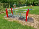 Punte cu corzi LL102K - metal (înălțime liberă 1 m) - nu este necesară o zonă de cădere până la înălțimea de 1 m, o suprafață cu iarbă este suficientă. Oferim trei variante de culori pentru structura de susținere - roșu, albastru și maro. Mai multe informaţii