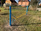 Plasă cu frânghii LP010K - nu este necesară o zonă de cădere până la înălțimea de 1 m, o suprafață cu iarbă este suficientă. Oferim trei variante de culori pentru structura de susținere - roșu, albastru și maro.