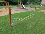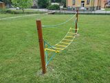 Plasă cu frânghii LP010K - nu este necesară o zonă de cădere până la înălțimea de 1 m, o suprafață cu iarbă este suficientă. Oferim trei variante de culori pentru structura de susținere - roșu, albastru și maro.