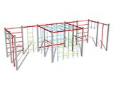 Perete de cățărare, scară suedeză, 2 sfori de cățărare, 2 stâlpi de cățărare, plasă de cățărare, scară cu frânghii, plasă de cățărare orizontală.