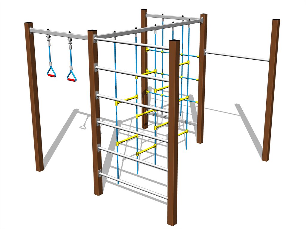Plasa de cățărare, orizontală, sfoara de cățărare și scara cu frânghii sunt realizate din material HERKULES (frânghii cu grosimea de 16 mm din polipropilenă cu miez interior din oțel) și sunt conectate cu îmbinări din plastic. Frânghiile sunt conectate cu îmbinări din plastic. Toate materialele de fixare sunt galvanizate sau sunt realizate din oțel inoxidabil.