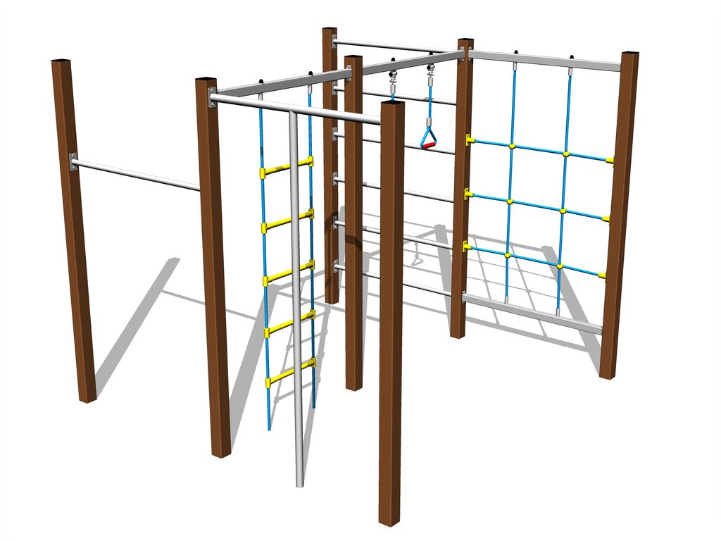 Plasa de cățărare, orizontală, sfoara de cățărare și scara cu frânghii sunt realizate din material HERKULES (frânghii cu grosimea de 16 mm din polipropilenă cu miez interior din oțel) și sunt conectate cu îmbinări din plastic. Frânghiile sunt conectate cu îmbinări din plastic. Toate materialele de fixare sunt galvanizate sau sunt realizate din oțel inoxidabil.