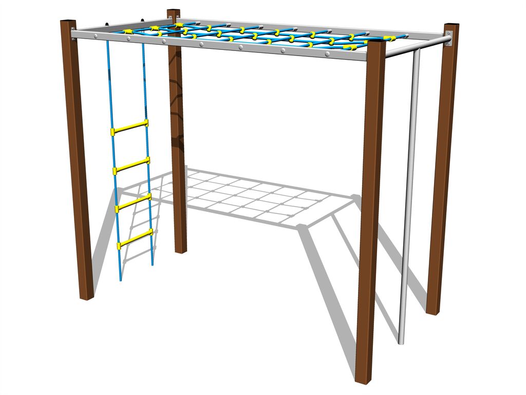 Plasa de cățărare și scara cu frânghii sunt realizate din material HERKULES (frânghii cu grosimea de 16 mm din polipropilenă cu miez interior din oțel) și sunt conectate cu îmbinări din plastic. Toate materialele de fixare sunt galvanizate sau sunt realizate din oțel inoxidabil.