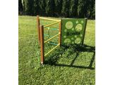 Structura de susținere a setului de cățărare este realizată din oțel structural, este zincată, ceea ce prelungește semnificativ durata de viață a unității de joacă sau acoperite cu duplex strat de vopsea pe bază de pulberi întărite în conformitate cu RAL, pentru a preveni coroziunea și este fixată într-o fundație de beton. Toate celelalte elemente metalice sunt, de asemenea, zincate sau acoperite cu duplex strat de vopsea pe bază de pulberi întărite în conformitate cu RAL, pentru a preveni coroziunea. Plasa de cățărare este realizată din material HERKULES (frânghii cu grosimea de 16 mm din polipropilenă cu miez interior din oțel) și este conectată cu îmbinări din plastic. Dispozitiv de aruncare a mingii este realizat din plastic HDPE de înaltă calitate (polietilenă complet colorată, de înaltă densitate, caracterizată printr-o stabilitate ridicată a culorii, rezistență la zgârieturi, rezistență la radiații UV, însă, în principal, siguranță, deoarece nu se sparge și nu există pericolul de vătămare corporală a copiilor din cauza reziduurilor ascuțite). Toate elementele de fixare sunt galvanizate sau sunt realizate din oțel inoxidabil.