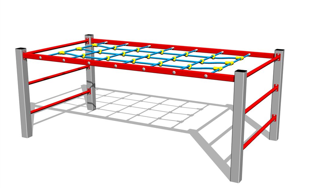 Plasă de cățărare, sfoară de cățărare, plase și scară cu frânghie sunt realizate din material HERKULES (frânghii cu grosimea de 16 mm din polipropilenă cu miez interior din oțel) și sunt conectate cu îmbinări din plastic. Toate materialele de fixare sunt galvanizate sau sunt realizate din oțel inoxidabil.