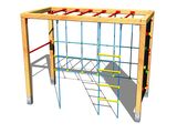 Structura de susținere a setului de cățărare este realizată cu suporturi din lemn groase, lipite. Această soluție asigură o protecție maximă împotriva fisurării, problemă comună la produsele realizate din lemn masiv. Suporturile din lemn sunt impregnate și acoperite cu un strat triplu de lac, care respectă termenii și condițiile standardului EN71/3 (sigur pentru jucăriile copiilor). Structurile sunt ancorate în sol cu plăci din oțel care sunt protejate împotriva coroziunii prin galvanizare la cald și sunt fixate într-o fundație de beton. Ancorele sunt fixate pe unitatea de joacă cu şuruburi, iar structura lor garantează că nu intră în contact direct cu solul. Toate celelalte elemente metalice sunt, de asemenea, zincate sau acoperite cu duplex strat de vopsea pe bază de pulberi întărite în conformitate cu RAL, pentru a preveni coroziunea.