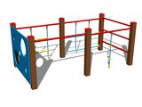 Plasa de cățărare și scară cu frânghie sunt realizate din material HERKULES (frânghii cu grosimea de 16 mm din polipropilenă cu miez interior din oțel) și sunt conectate cu îmbinări din plastic. Peretele este realizat din plastic HDPE de înaltă calitate (polietilenă complet colorată, de înaltă densitate, caracterizată printr-o stabilitate ridicată a culorii, rezistență la zgârieturi, rezistență la radiații UV, însă, în principal, siguranță, deoarece nu se sparge și nu există pericolul de vătămare corporală a copiilor din cauza reziduurilor ascuțite). Toate elementele de fixare sunt galvanizate sau sunt realizate din oțel inoxidabil.
