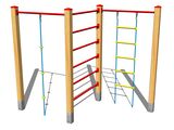Structura de susținere a setului de cățărare este realizată cu suporturi din lemn groase, lipite. Această soluție asigură o protecție maximă împotriva fisurării, problemă comună la produsele realizate din lemn masiv. Suporturile din lemn sunt impregnate și acoperite cu un strat triplu de lac, care respectă termenii și condițiile standardului EN71/3 (sigur pentru jucăriile copiilor). Structurile sunt ancorate în sol cu plăci din oțel care sunt protejate împotriva coroziunii prin galvanizare la cald și sunt fixate într-o fundație de beton. Ancorele sunt fixate pe unitatea de joacă cu şuruburi, iar structura lor garantează că nu intră în contact direct cu solul. Toate celelalte elemente metalice sunt, de asemenea, zincate sau acoperite cu duplex strat de vopsea pe bază de pulberi întărite în conformitate cu RAL, pentru a preveni coroziunea.