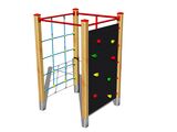 Plasa de cățărare este realizată din material HERKULES (frânghii cu grosimea de 16 mm din polipropilenă cu miez interior din oțel) și este conectată cu îmbinări din plastic. Peretele de cățărare este realizat din placaj impermeabil, proiectat pentru utilizare la exterior. Suporturile de cățărare sunt realizate dintr-un amestec de nisip de silice și rășină epoxidică, care asigură o durată lungă de viață, păstrarea culorii, precum și o suprafață confortabilă la contactul cu pielea. Toate materialele de fixare sunt galvanizate sau sunt realizate din oțel inoxidabil.