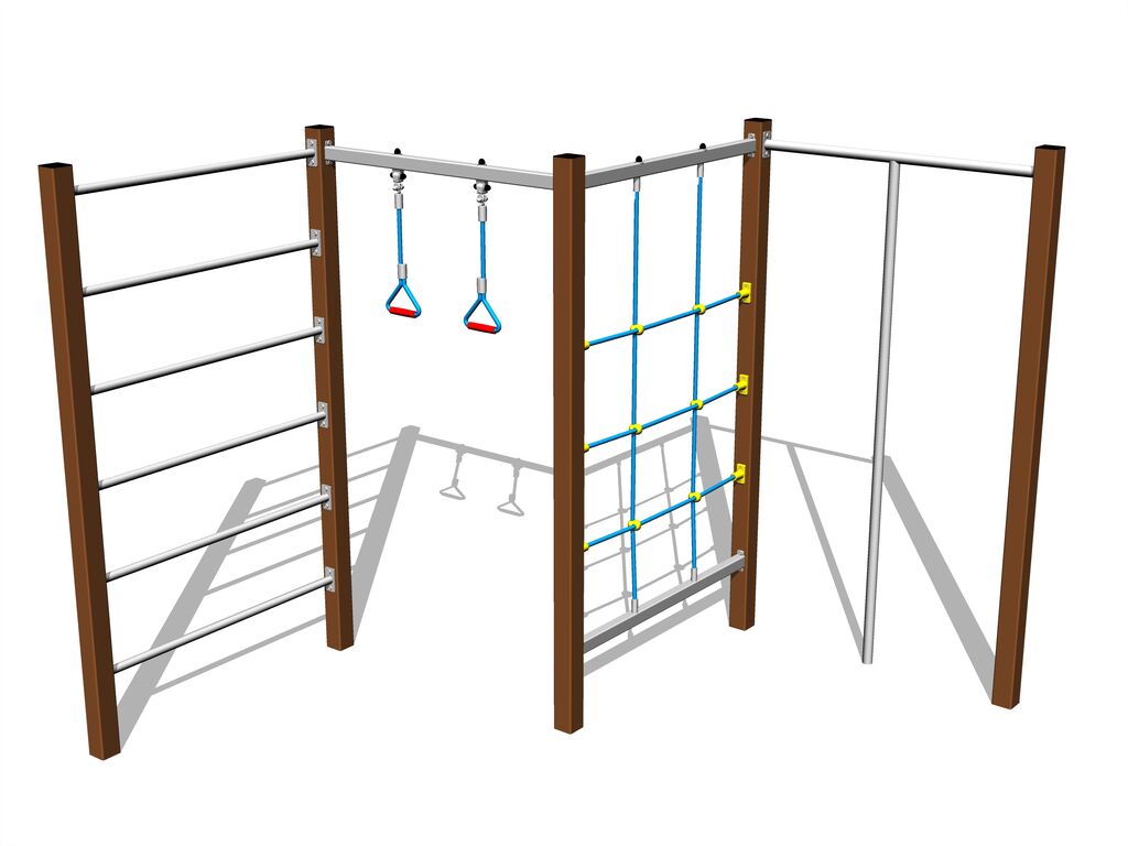Plasa de cățărare și buclele frânghiilor de legănare sunt realizate din material HERKULES (frânghii cu grosimea de 16 mm din polipropilenă cu miez interior din oțel) și sunt conectate cu îmbinări din plastic. Toate materialele de fixare sunt galvanizate sau sunt realizate din oțel inoxidabil.
