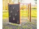 Plasa de cățărare și scara cu frânghii sunt realizate din material HERKULES (frânghii cu grosimea de 16 mm din polipropilenă cu miez interior din oțel) și sunt conectate cu îmbinări din plastic. Peretele de cățărare este realizată din HPL (Laminat de înaltă presiune, caracterizată printr-o stabilitate ridicată a culorii însă și rezistența la apă). Suporturile de cățărare sunt realizate dintr-un amestec de nisip de silice și rășină epoxidică, care asigură o durată lungă de viață, păstrarea culorii, precum și o suprafață confortabilă la contactul cu pielea. Toate materialele de fixare sunt galvanizate sau sunt realizate din oțel inoxidabil.
