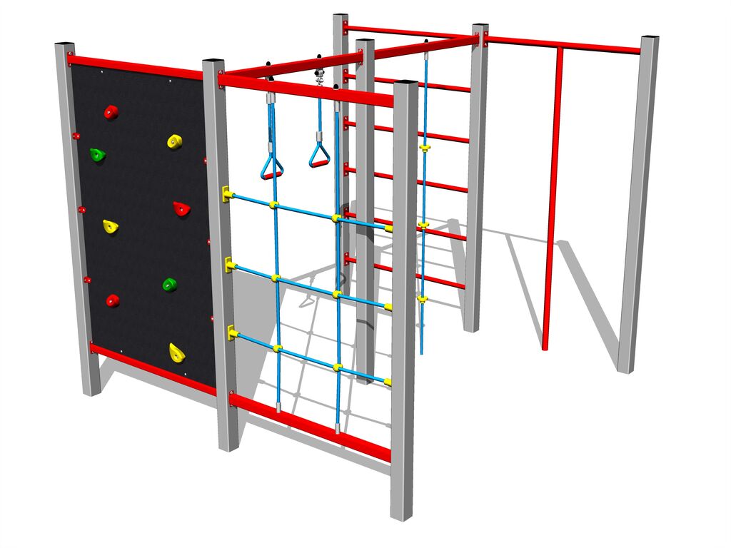 Perete de cățărare, stâlp de cățărare, scară suedeză, scară cu frânghii, plasă de cățărare, sfoară de cățărare, pânză de păianjen.