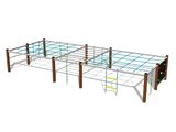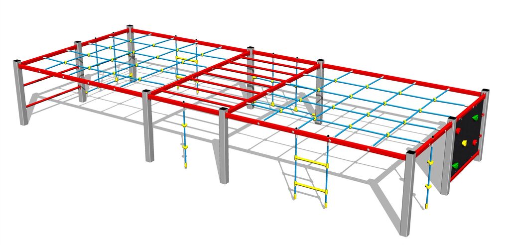 Plasa de cățărare, orizontală, sfoara de cățărare și scara cu frânghii sunt realizate din material HERKULES (frânghii cu grosimea de 16 mm din polipropilenă cu miez interior din oțel) și sunt conectate cu îmbinări din plastic. Peretele de cățărare este realizată din HPL (Laminat de înaltă presiune, caracterizată printr-o stabilitate ridicată a culorii însă și rezistența la apă). Suporturile de cățărare sunt realizate din poliester, care asigură o durată lungă de viață, păstrarea culorii, precum și o suprafață confortabilă la contactul cu pielea. Toate materialele de fixare sunt galvanizate sau sunt realizate din oțel inoxidabil.