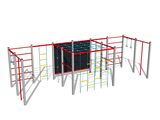 Perete de cățărare, scară suedeză, 2 sfori de cățărare, 2 stâlpi de cățărare, plasă de cățărare, scară cu frânghii, plasă de cățărare orizontală.