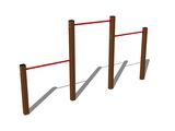 Structura de susținere a standului de fitness triplu este realizată din oțel structural,care este protejat împotriva coroziunii prin zincare, ceea ce conduce la o durată lungă de viață a elementelor pentru antrenament sau acoperite cu duplex strat de vopsea pe bază de pulberi întărite în conformitate cu RAL, pentru a preveni coroziunea și este fixată într-o fundație de beton. Toate celelalte elemente metalice sunt, de asemenea, )zincate sau acoperite cu duplex strat de vopsea pe bază de pulberi întărite în conformitate cu RAL, pentru a preveni coroziunea. Standul de fitness triplu este construit în jurul ideii de durabilitate și durată lungă de viață. Toate materialele de fixare sunt galvanizate sau sunt realizate din oțel inoxidabil.
