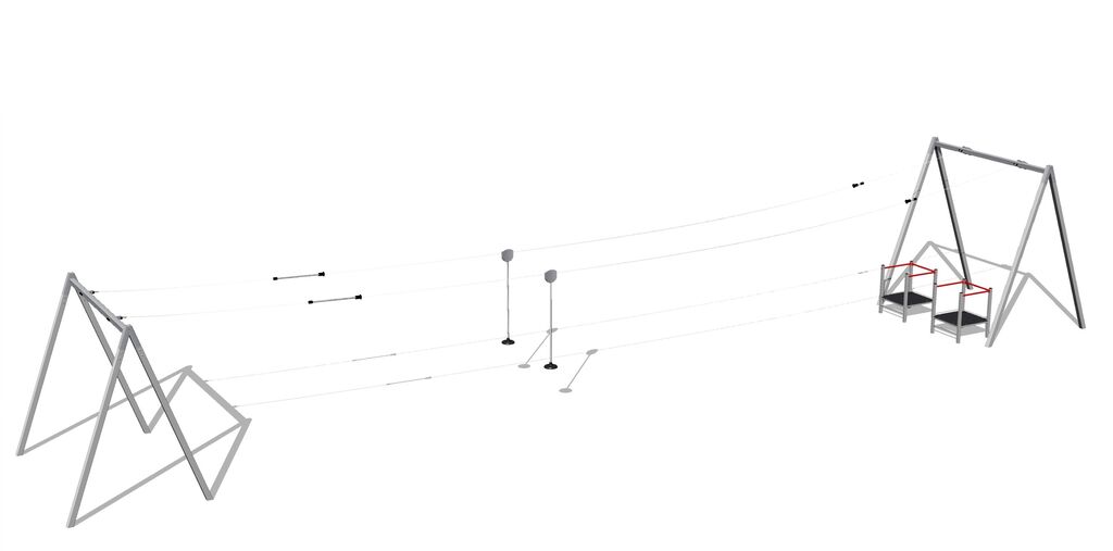 Tiroliană cu doi stâlpi LD031K - nu este necesară o zonă de cădere până la înălțimea de 1 m, o suprafață cu iarbă este suficientă. Mai multe informaţii