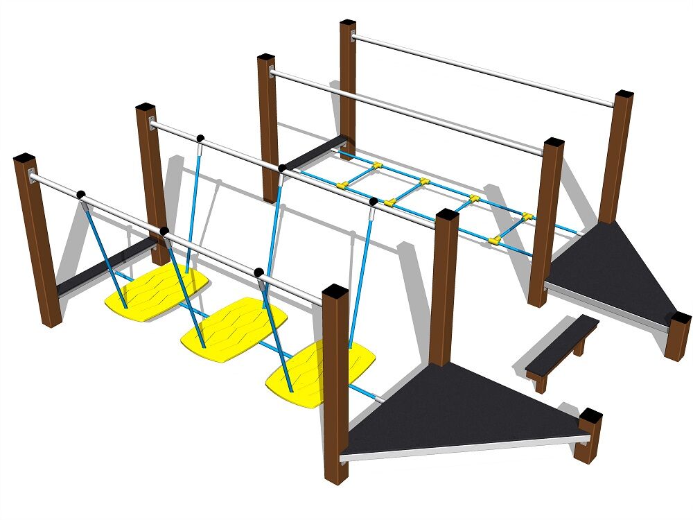 Traseul îndemânării SD8006K - nu este necesară o zonă de cădere până la înălțimea de 1 m, o suprafață cu iarbă este suficientă. Oferim două variante de culoare ale structurii de susținere - maro și argintiu. Mai multe informaţii