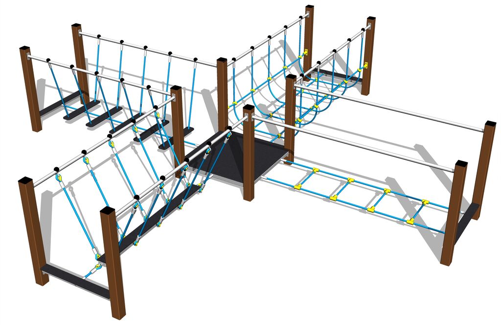 Traseul îndemânării SD8010K - nu este necesară o zonă de cădere până la înălțimea de 1 m, o suprafață cu iarbă este suficientă. Oferim două variante de culoare ale structurii de susținere - maro și argintiu. Mai multe informaţii