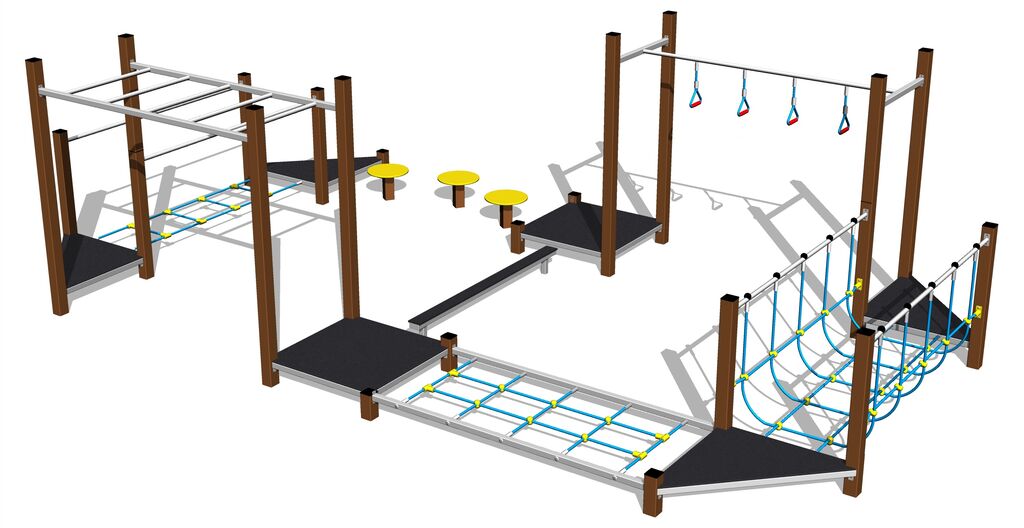 Traseul îndemânării SD8013K - nu este necesară o zonă de cădere până la înălțimea de 1 m, o suprafață cu iarbă este suficientă. Oferim două variante de culoare ale structurii de susținere - maro și argintiu. Mai multe informaţii