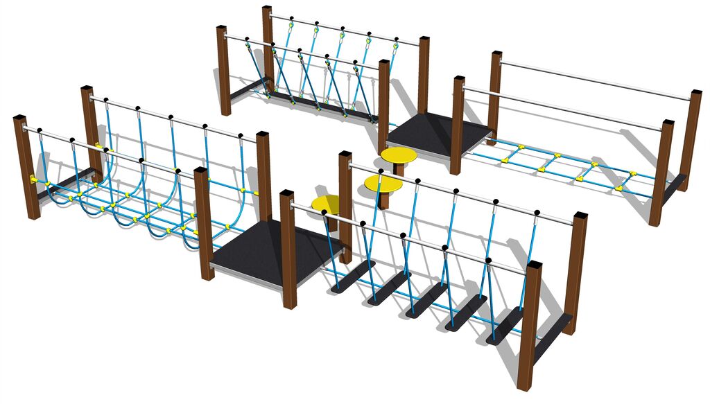 Traseul îndemânării SD8014K - nu este necesară o zonă de cădere până la înălțimea de 1 m, o suprafață cu iarbă este suficientă. Oferim două variante de culoare ale structurii de susținere - maro și argintiu. Mai multe informaţii