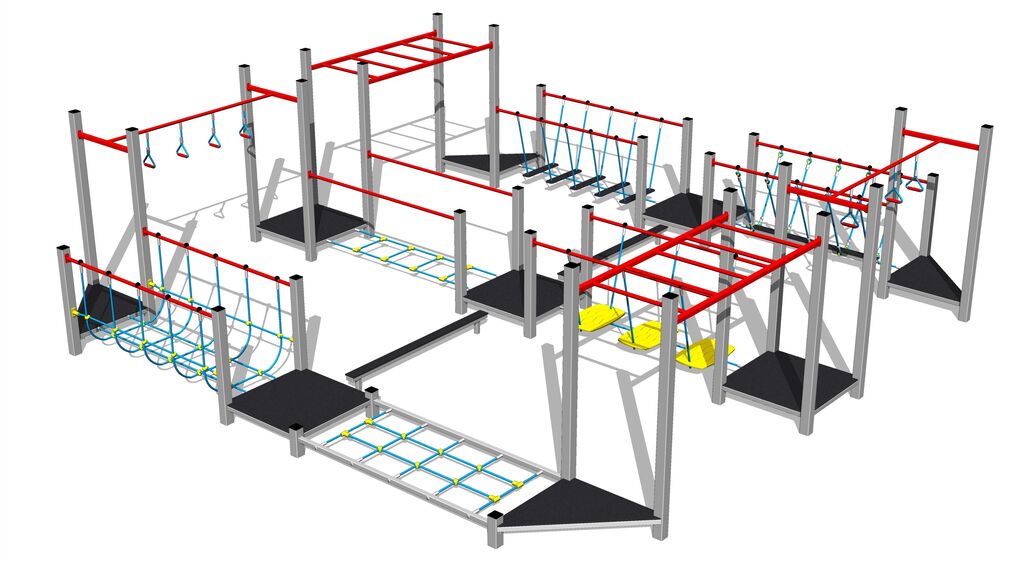 Traseul îndemânării SD8020K - nu este necesară o zonă de cădere până la înălțimea de 1 m, o suprafață cu iarbă este suficientă. Oferim două variante de culoare ale structurii de susținere - maro și argintiu. Mai multe informaţii
