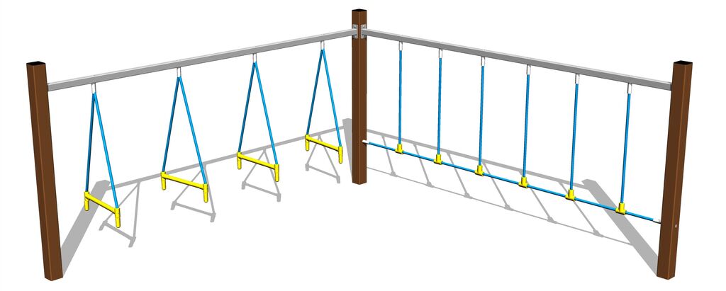 Urma maimuței - nu este necesară o zonă de cădere până la înălțimea de 1 m, o suprafață cu iarbă este suficientă. Oferim patru variante de culori pentru structura de susținere - roșu, albastru, maro și lime.